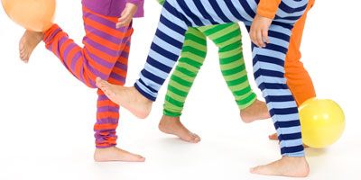 - Variation: I stedet for gakkede gangarter kan man synge en sang på vejen ned ad gulvet.