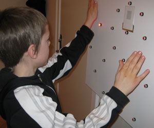 Albert er blevet lynhurtig til øvelsen med at slukke tændte lamper på en plade.