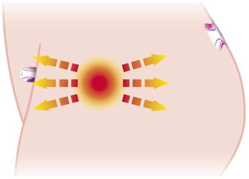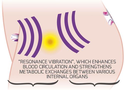 Sæt FIT Lady på de anførte punkter og vent i to minutter, så kropsvarmen kan aktivere den akrylbaserede klæbemasse og sikre den bedste adhæsion. Herefter vil FIT Lady forvandle sig til et spejl, der reflekterer kroppens egen energi, som trænger ned i en dybde på cirka 8-9 cm og producerer en smertestillende virkning